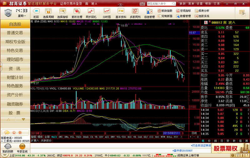 招商证券智远理财服务平台是招商证券采用最新IT技术倾心为投资者打造的新一代综合理财服务平台,操作便利,功能强大,不仅包含网上交易所有版本(全能版、金钻版、财富版、闪电版和股指套利版)的功能, 还有众多新的特色服务(在线互动、理财超市、图文F10、资金流向、资产分析等),打造更完美的用户体验,欢迎使用!招商证券智远理财服务平台是由招商证券倾心为投资者们打造的新一代证券服务系统,操作便利,功能强大齐全,包含网上交易所有版本的功能和服务。欢迎投资者使用!