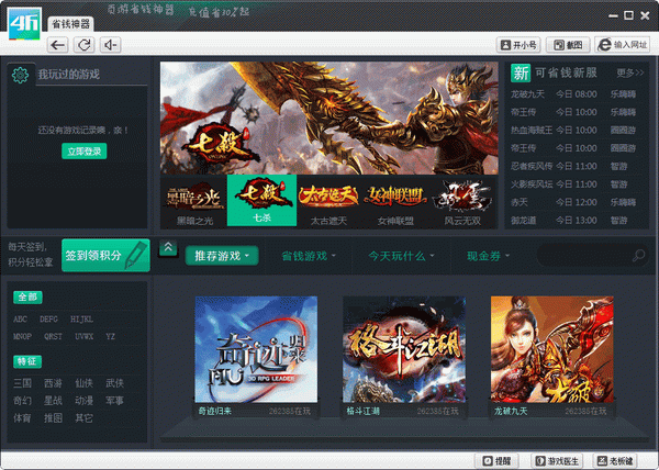 页游省钱神器是一款帮助页游玩家省钱的利器,所有通过页游省钱神器进入游戏的玩家充值最少可以返40%,如果是vip用户,充值返得达60%。