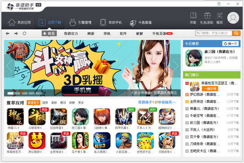 靠谱助手,让您享受电脑运行手游!无数款安卓游戏与应用供您下载,每天推荐最火热的应用和最好玩的游戏,让您轻松成为时尚的玩机达人。 安装靠谱助手助手,瞬间下软件,畅玩编辑精选游戏,随时管理软件。!
